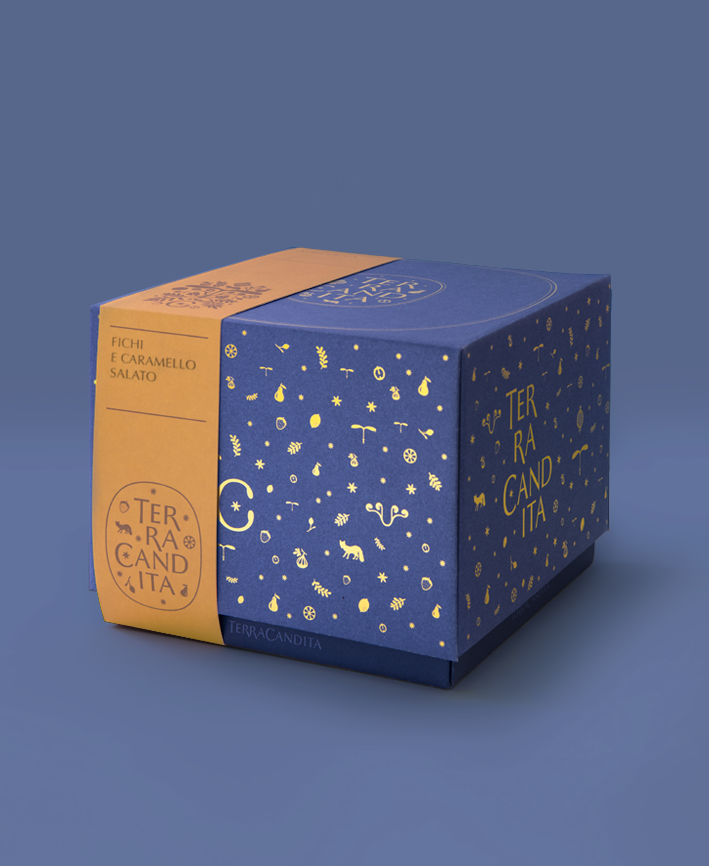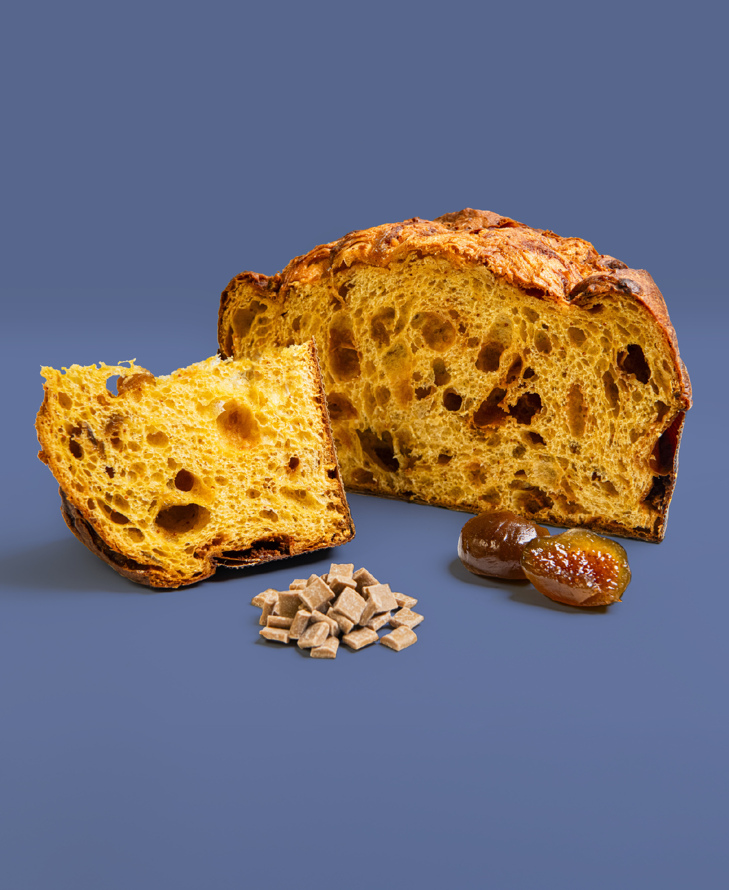 Farina di GRANO tenero tipo 0, Fico candito 16% (Fichi, Zucchero semolato, Sciroppo di glucosio), BURRO, Tuorlo d’UOVA fresche, Acqua, Zucchero semolato, Farina di GRANO tenero tipo 00, Lievito madre (Farina di GRANO tenero, acqua), Cioccolato caramello 2% (Zucchero semolato, Burro di cacao, LATTE scremato in polvere, BURRO,